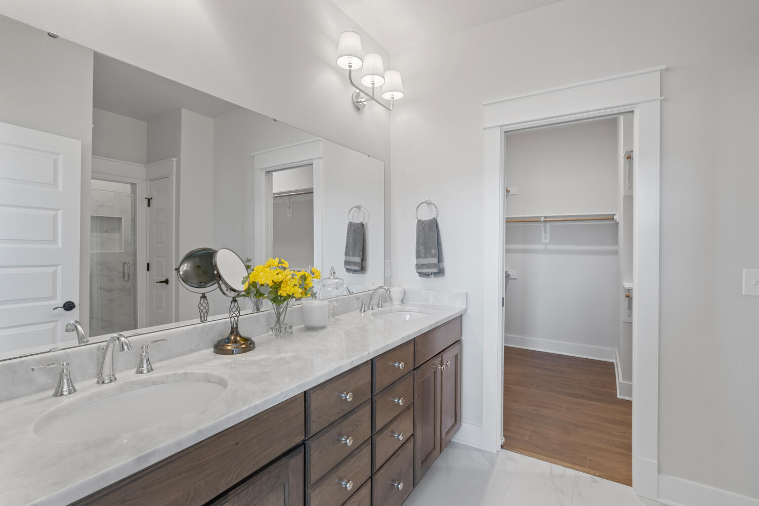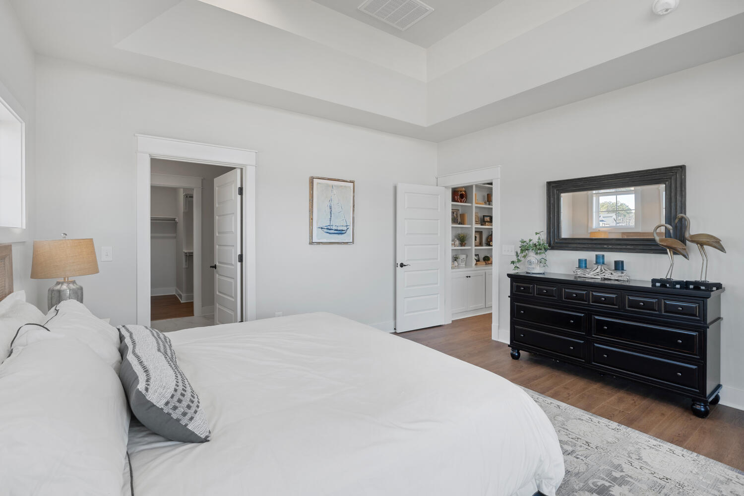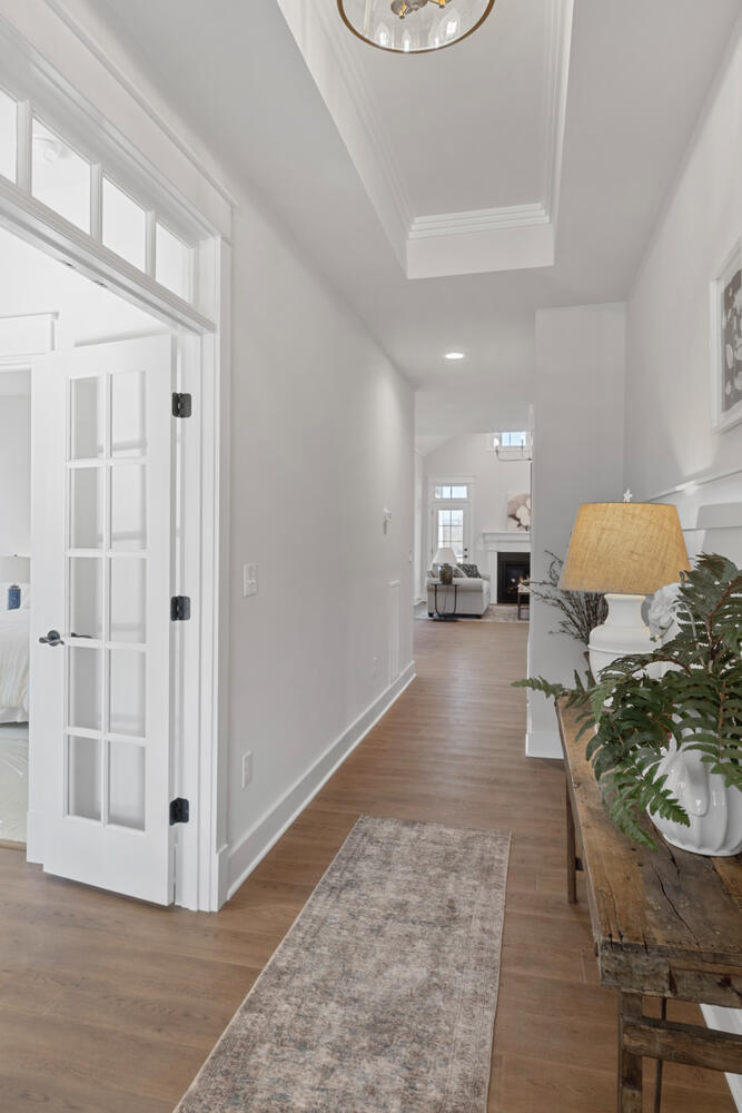 The first floor Owner’s Suite is tucked away from the living area and features a beautiful trey ceiling, large walk-in closet and spacious Owner’s Bath. The Bath has a standing shower, double vanities and a private water closet.